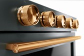 Stainless steel will always be a classic, but 2026 is embracing warmer, homey finishes like Kitchen Aid’s new Juniper or Black Ore with Bronze, Black and Brass accents. Handles are sleeker, surfaces are more fingerprint-resistant, and the overall feeling is warmer and more inviting.